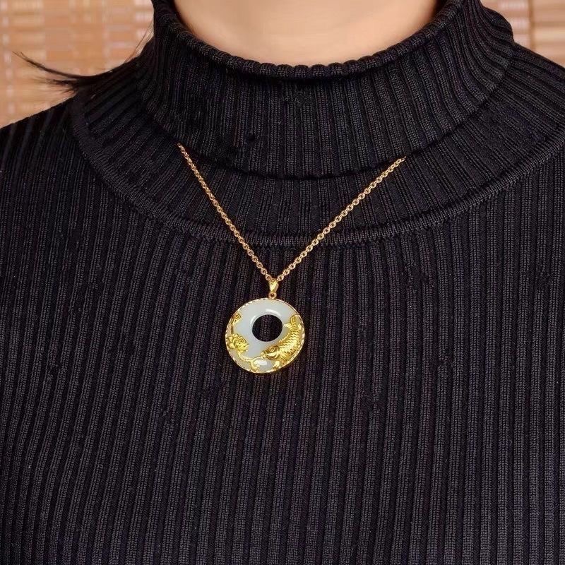 Natural carp pendant gold-plated necklace