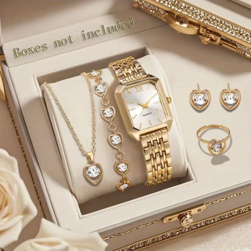 Fashionable, elegant, and versatile watch, watch necklace bracelet earring ring five-piece set