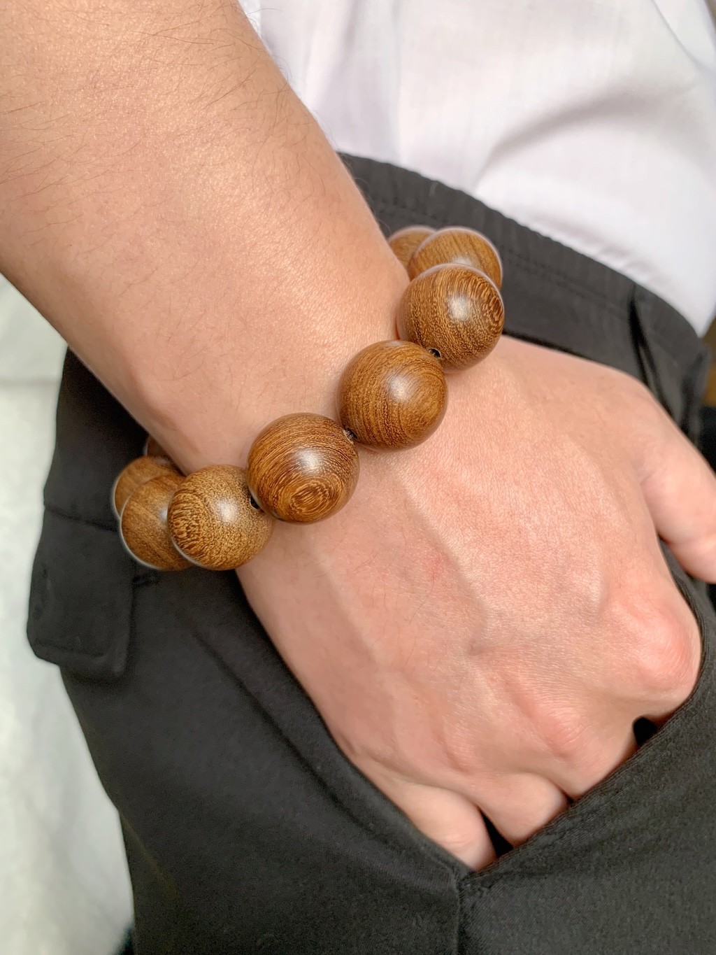 Hainan Huanghuali Pear Bracelet 15mm - Bringing Wealth and Treasure, Delicate Aroma - Wood Grain Her