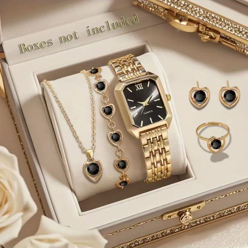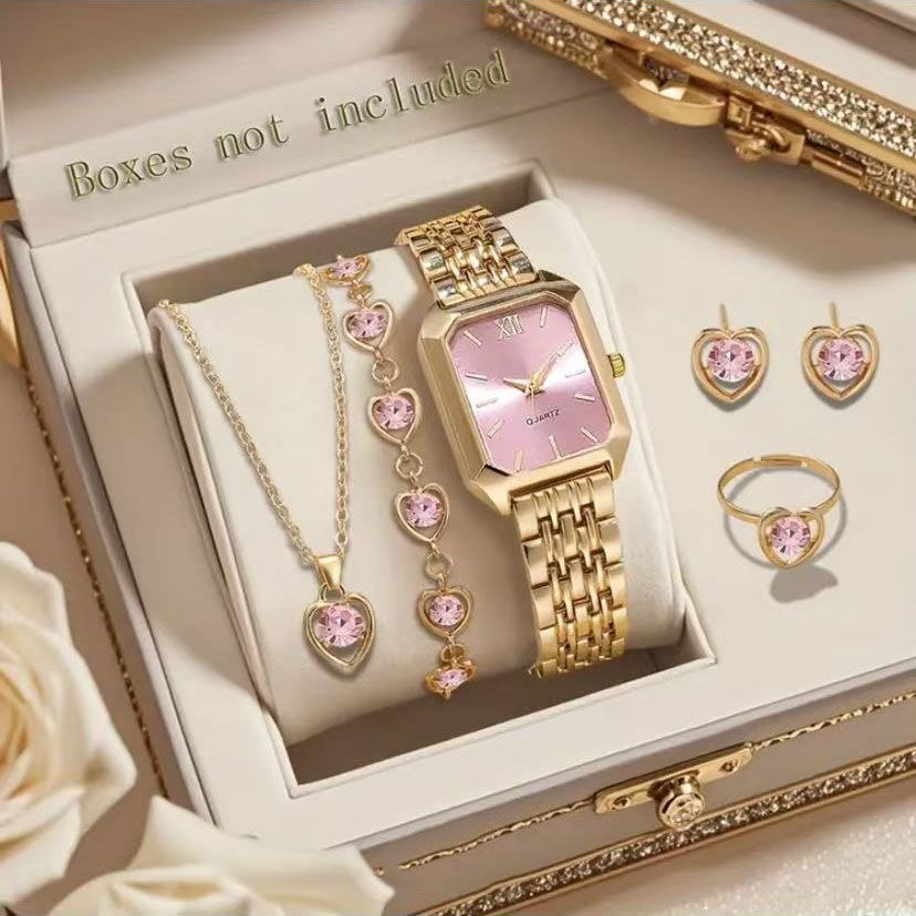 Fashionable, elegant, and versatile watch, watch necklace bracelet earring ring five-piece set